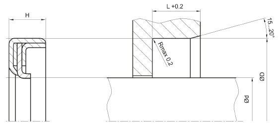 The outer diamenter of the metal outer casing is centralised in the housing by press-fitting. Suitable tools should be used for installation. It is recommended that the installation housing is designed to provide the rotary shaft seal with axial support. The PTFE sealing lip must not be damaged during installation. For this reason, we recommend using an installation cone.